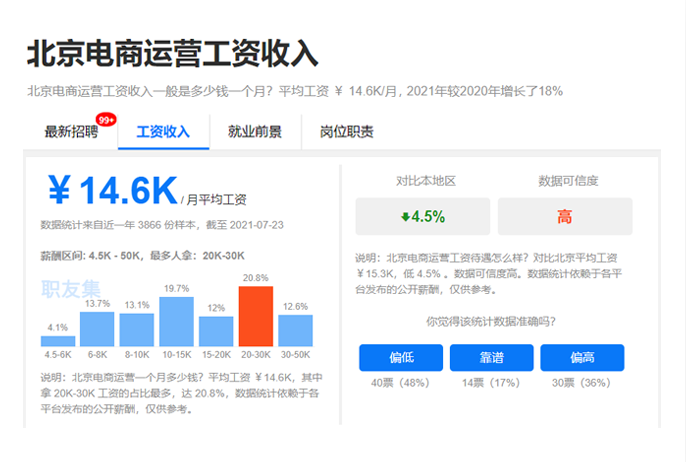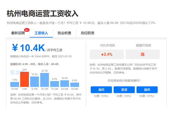 一二線城市入行薪資,不低于5k,電商運營,人才還能拿提成